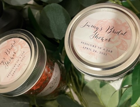 The Maid of Honor and the Matron of Honor agreed to handle the Bridal Shower Favors for the guests. I hinted at an idea (scooped right off Instagram !!) - "Pedicure in a Jar." Which I think was the perfect gift idea for the bridal shower attendees. All we had to do was to order the various components of the favors off Amazon like Mason Jars, Mini Pedicure kits and Nail Colors, which both girls did, with emphasis on rush order delivery if needed, so that there was a cushion for couple of days delay. Then the 5 of us "bridal shower coordinators", along with Jaimy's brother, assembled them together the night before the shower. Trust me, it was so much fun just getting together to do this stuff!!