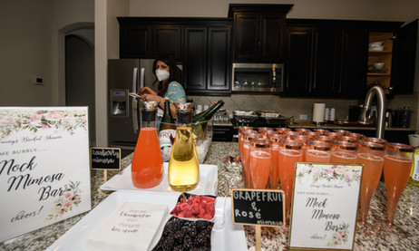 Since my creative juices were already in full swing, I figured that I'd design and printed out custom Bridal Shower signs to be placed at different locations throughout the house to help guests navigate through. An insider tip - signs actually help guests to know what to do, without having to bark loud instructions or ground rules at them. For example, I made signs for the Mimosa Bar, Gifts for the Bride, Advices and Wishes (placed by the Gift card / Advice Box), Photo Booth, Favors, Serving ware instructions and most importantly, COVID instructions.